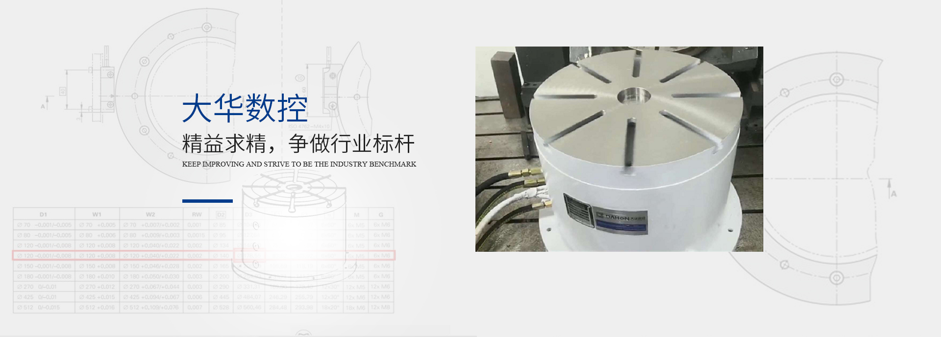 大華數(shù)控瞄準(zhǔn)高速、高精、數(shù)控機(jī)床對(duì)機(jī)床附件的迫切需求,以自主知識(shí)產(chǎn)權(quán)技術(shù)研發(fā)為核心,融合機(jī)床制造技術(shù)進(jìn)行集成創(chuàng)新,與優(yōu)良配套加工制造企業(yè)緊密合作,堅(jiān)持技術(shù)先導(dǎo)戰(zhàn)略,“大”研發(fā)、“精”制造、“高”技術(shù),“優(yōu)”產(chǎn)品,致力于核心技術(shù)的研發(fā)、推廣及應(yīng)用,將為數(shù)控機(jī)械的綠色、節(jié)能、環(huán)保、高精需求提供有力支撐,精心打造“大華”品牌,目標(biāo) —— 成為行業(yè)領(lǐng)軍者!